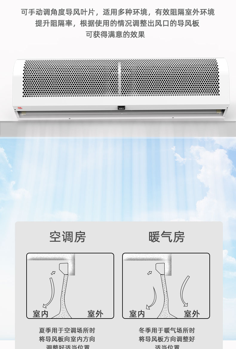 獨(dú)特導(dǎo)風(fēng)板設(shè)計(jì),風(fēng)向可自由微調(diào)節(jié),適應(yīng)多種使用環(huán)境。